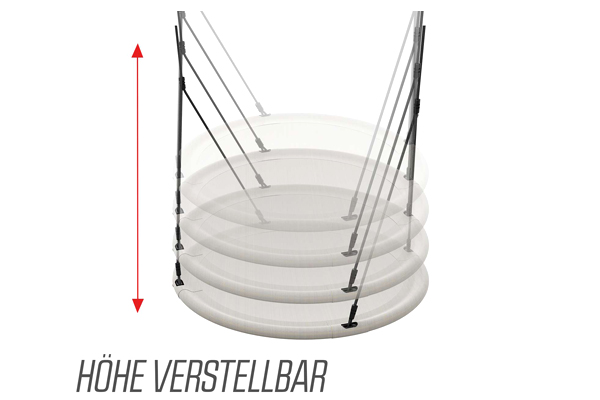 • Höhenverstellbar: Stabile schwarze Seile, die sich leicht auf verschiedene Höhen einstellen lassen.