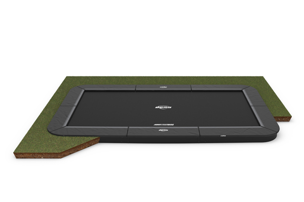 Ein FlatGround-Trampolin fügt sich nahtlos in Ihren Garten ein, da es ebenerdig mit dem Rasen ist und nur minimal erhöht ist. Es ist auch außergewöhnlich stabil, da es auf Bodenniveau installiert ist. Das Elite FlatGround bietet eine großzügige Sprungfläche, und sein dickeres Gestell gewährleistet optimale Steifigkeit und ermöglicht eine bessere Sprungkontrolle.