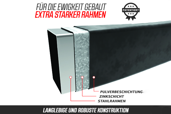 • Die extra dicke Schutzkante bietet optimalen Schutz im Falle eines unbeabsichtigten Sturzes und hat aufgrund ihrer UV-beständigen Beschichtung eine lange Lebensdauer.
